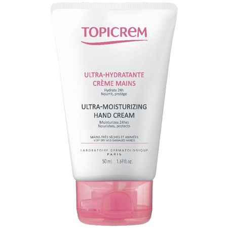 Крем с легкой текстурой и приятным ароматом Topicrem Ultra Hydratante Crème mains обеспечивает мгновенное и длительное увлажнение на 24 часа. Формула разработана специально для сухой, очень сухой и поврежденной кожи рук. Тщательно подобранные ингредиенты оказывают питательное, смягчающее и восстанавливающее действие. Сразу после нанесения уходит чувство сухости и стянутости, кожа рук становится гладкой и нежной. Ультраувлажняющий Крем для рук Топикрем подходит младенцам, детям и взрослым, его безопасность подтверждена дерматологическими тестами. Благодаря легкой текстуре средство быстро впитывается, не оставляет липкой и жирной плени. Активные компоненты: вазелиновое масло и глицерин увлажняют, предотвращают пересыхание; мочевина успокаивает и глубоко увлажняет кожу, улучшает барьерные свойства эпидермиса; жирные к-ты (пальмитиновая и стеариновая) предотвращают потерю влаги, восстанавливают защитный барьер; аллантоин снимает воспаление, ускоряет заживление; карбомерзащищает кожу от внешних раздражителей и климатических стрессов. без парабенов гипоаллергенно