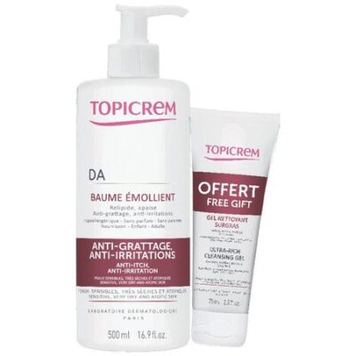 Увлажняет и смягчает кожу, уменьшает раздражение и зудВ набор входят:1. Топикрем АД Бальзам липидовосстанавливающий 500 млРазработан для ухода за очень сухой чувствительной и атопичной кожей младенцев, детей и взрослых. Восстанавливает гидролипидную пленку, успокаивает, увлажняет и смягчает кожу. 2. Топикрем АД Гель очищающий для атопичной кожи 75 мл (Подарок!)Гель разработан специально для ежедневного очищения очень сухой и атопичной кожи и кожи с проявлениями экземы у младенцев, детей и взрослых.