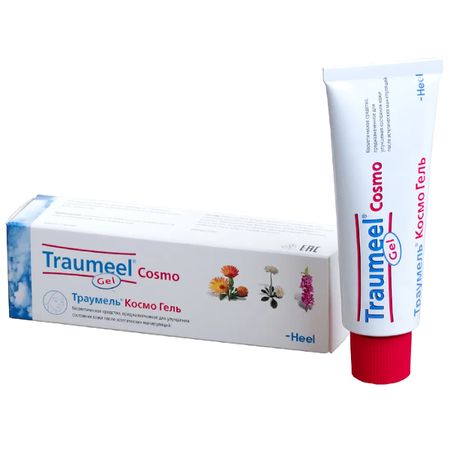 «Траумель® Космо гель, 50 г- косметическое средство, предназначенное для улучшения состояния кожи после эстетических процедур. Благодаря экстрактам арники, календулы, гамамелисаи и ромашки обладает успокаивающим и восстанавливающим кожу эффектами. Траумель® Космо гель разработан специально для использования в период заживления и восстановления кожи после эстетических манипуляций (чистка лица, мезотерапия, биоревитализация, инъекционные процедуры) для помощи в устранении следующих неприятных последствий: • покраснение, • раздражение, • отечность, • гематомы, • воспалительные реакции Траумель® Космо гель безопасен как для немедленного применения на поврежденные области, так и для длительного ухода за проблемной кожей. Он подойдет людям со склонностью к воспалению кожного покрова и возникновению прыщей. При регулярном применении может помочь улучшить состояние кожи со следами постакне — атрофическими последствиями угревой сыпи»