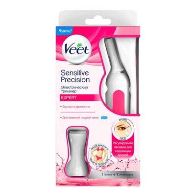 Электрический триммер Veet для чувствительных участков тела. С новым триммером Veet Sensitive Precision вы всегда будете выглядеть идеально, не прилагая особых усилий. Триммер быстро и бережно удаляет нежелательные волоски на чувствительной коже лица и в области бикини.