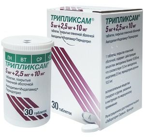 Трипликсам — комбинированный препарат, включающий в себя три антигипертензивных компонента, каждый из которых дополняет действие других по контролю артериального давления у пациентов с артериальной гипертензией. Амлодипин — блокатор «медленных» кальциевых каналов (БМКК), производное дигидропиридина, индапамид — сульфонамидный диуретик, периндоприла аргинин — ингибитор фермента, превращающего ангиотензин I в ангиотензин II (ингибитор АПФ).