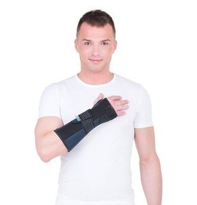 Основа компрессионного бандажа из воздухопроницаемого материала FORTIS H-Tex, с малой растяжимостью съемная металлическая моделируемая пластина на ладонной поверхности изделия три дополнительных моделируемых ребра жесткости на тыльной поверхности бандажа застежки «Велкро» обеспечивают фиксацию изделия в области лучезапястного сустава дополнительная эластичная лента с застежками «Велкро» для регулировки степени фиксации удлиненная модель осуществляет фиксацию до верхней трети предплечья выпускается для левой и правой руки высота: 26 смФункции: обеспечивает сильную фиксацию лучезапястного сустава в функционально выгодном положении до верхней трети предплечья уменьшает болевые ощущения в области сустава и средней трети предплечья способствует уменьшению отека в области лучезапястного сустава и тыльной стороны кисти при травмах и заболеваниях ускоряет реабилитацию после травм и заболеваний лучезапястного сустава и запястья