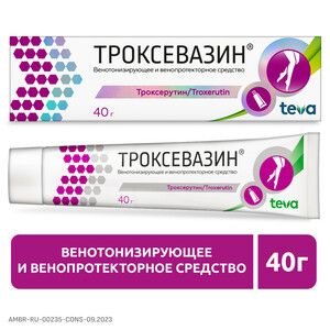 Показания к применениюВарикозное расширение вен ног Хроническая венозная недостаточность с такими проявлениями как: отеки боль ощущение тяжести в ногах Поверхностный тромбофлебит перифлебит флеботромбоз Посттромботический синдром Посттромботический отек гематомы Профилактика осложнений после операций на венах.Применение при беременности и кормлении грудьюБеременностьВ I триместре беременности применение препарата противопоказано в связи с отсутствием опыта клинического применения. Во II и III триместрах беременности применение препарата возможно в случае если ожидаемая польза для матери превышает потенциальный риск для плода. Перед применением препарата во II и III триместрах беременности необходимо проконсультироваться с врачом.Период грудного вскармливанияДанные о проникновении троксерутина в грудное молоко отсутствуют. Препарат не следует применять в период грудного вскармливания.ПротивопоказанияПовышенная чувствительность к препаратуНарушение целостности кожных покровов Детский возраст до 18 лет (опыт клинического применения недостаточен).Побочное действиеНарушения со стороны иммунной системы: редко — крапивница экзема дерматит.Если у Вас отмечаются побочные эффекты указанные в инструкции или они усугубляются или Вы заметили любые другие побочные эффекты не указанные в инструкции сообщите об этом врачу.Состав100 г геля содержат:Действующее вещество: троксерутин 2 0 гВспомогательные вещества: карбомер 0 60 г троламин (триэтаноламин) 0 70 г динатрия эдетата дигидрат 0 05 г бензалкония хлорид 0 10 г вода очищенная 96 55 г.Взаимодействие с другими препаратамиДанных по взаимодействию троксерутина с другими лекарственными средствами нет.