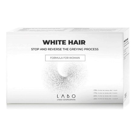 White hair ампульное косметическое средство местного применения для приостановки процесса поседения и восстановления естественного цвета волос. Способствует стимулированию выработки натурального меланина в волосах и снижению проявления седых волос. Старение кожи и некоторые внешние факторы провоцируют постепенное исчезновение натурального меланина, оставляя волосы депигментированными. Естественные процессы образования меланина могут быть восстановлены благодаря активным молекулам с низкой и очень низкой молекулярной массой, включенными в формулу состава White hair. Они действуют на различных этапах формирования волос, препятствуя причинам, приводящим к образованию седины, и стимулируя выработку натурального пигмента меланоцитами (без использования красящих веществ).
