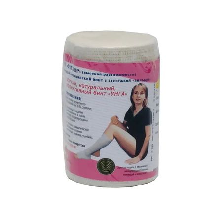 Предназначены для профилактики и компрессионной терапии в флебологии, хирургии, травматологии, ортопедии, спортивной медицине. Эластичные бинты используют в целях профилактики и лечения варикозного расширения вен, тромбоэмболических осложнений после хирургических операций, для фиксации суставов и наложения давящей повязки после снятия гипса. Бинты имеют разную степень растяжимости: высокую, среднюю и малую. Бинты изготовлены на основе эластомерного волокна LYCRA ® и натурального хлопка (до 80%). Бинты УНГА ® имеют самый длительный срок эксплуатации без потери эластичности и компрессионных свойств среди всех изделий представленных на российском рынке. Бинт Медицинский Эластичный Высокой Растяжимости «Унга-ВР» (арт. С-305) Безопасность Полная безопасность для здоровья достигается за счет большого содержания натурального хлопка. Это снижает риск развития аллергических реакций. Эффективность В разработке приняли участие специалисты Института хирургии им. А.В. Вишневского РАМН. К тому же эффективность подтверждена клиническими исследованиями. Соблюдение всех отраслевых стандартов гарантирует высокое качество. Комфорт Специальная многослойная технология улучшает паровлагообмен, позволяет коже дышать. Застёжка-липучка и оптимальная ширина полотна делают использование удобным. Долговечность Использование современных материалов и европейских технологий делает изделия надёжными и долговечными. Сохраняет стабильную компрессию после многократных стирок