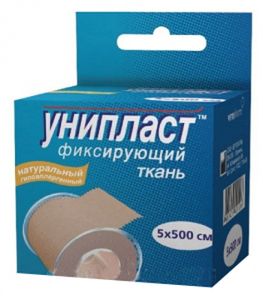 Лейкопластырь Унипласт фиксирующий натуральная основа — липкая полоска основы (ткани хлопчатобумажной) телесного цветаУнипласт® фиксирующий (ткань) — пластырь на ткани телесного цвета: сочетание надежной фиксации и маскирующего эффекта.Характеристики: основа — 100 % х/б ткань, гипоаллергенный, надежно фиксирует, воздухопроницаемый, безболезненно и без остатков удаляется, моделируется без использования ножниц за счет краевых зубцов, телесная основа.Хлопчатобумажная «дышащая» основа пластыря телесного цвета не только обеспечивает хорошую фиксацию, но и незаметна на коже.Пластырь легко моделируется без использования ножниц за счет краевых зубцов, удаляется безболезненно, не оставляет следов.Описание принципа дейсrвия:Лейкопластырь «Унипласт фиксирующий» за счет клеевого покрытия надежно фиксирует повязки на ранах, фурункулах и т.д., а также надежно фиксирует трубки, зонды, катетеры и другие предметы медицинского назначения.