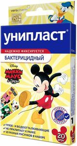 Детский пластырь с героями Дисней. Характеристики: основа – мягкая, эластичная пленка пропитка – хлоргексидином биглюконатом влагостойкий, атравматичный, не обладает местно-раздражающим и сенсибилизирующим действием, грязеотталкивающий. Благодаря бактерицидной пропитке ускоряет заживление ранки, а атравматичная прокладка помогает предотвратить образование корки. Разнообразные рисунки помогут сделать пластырь частью игры для ребенка.