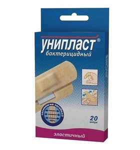 Унипласт® бактерицидный натуральный — при порезах, ссадинах, мозолях и небольших ожогах.Характеристики: основа — 100-процентная х/б ткань, воздухопроницаемый, атравматичный, гипоаллергенный, телесная основа.Воздухопроницаемый пластырь имеет натуральную хлопчатобумажную основу телесного цвета, поэтому его удобно использовать для открытых частей тела.Может применяться при мелких повреждениях кожи: ссадинах, порезах, мозолях, ожогах.Описание принципа действия:Лейкопластырь «Унипласт бактерицидный» — наружное антисептическое перевязочное средство.Прикрепленная к липкой основе и пропитанная раствором хлоргексидина биглюконата прокладка, накладывается на рану и оказывает антисептическое действие.
