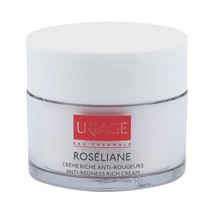 Компания Uriage (Урьяж) — это производитель натуральной косметики основой которой является термальная вода. Вся продукция компании производится согласно высочайшим международным стандартам и особому контролю за качеством сырья и микробиологическому контролю. Базовая составляющая любой гаммы данного бренда составляем термальная вода, источник которой находится у подножия Альп на высоте 400 метров.Богатая текстура насыщенного крема против покраснений Урьяж Розельян идеальна для ухода за сухой, гиперчувствительной кожей. Uriage Roseliane Creme Anti-Rougeurs моментально устраняет стянутость, жжение и жар благодаря действию термальной воды Uriage. Три уникальных комплекса устраняют причины красноты лица и образования сосудистых дефектов.Прозрачная, неощутимая пленка, которая образуется на коже после впитывания крема против покраснений Урьяж Розельян, сохраняет влагу в эпидермисе, защищает от климатических стрессов. Перламутровые частички оптически выравнивают тон лица, придают ему нежное сияние, маскируют проявления купероза.Активные компоненты Урьяж Розельян Насыщенного крема против покраснений: комплекс SK5R Complex регулирует активность калликреина- 5 (фермента, который участвует в каскаде воспалительных реакций), комплексTLR2-Regul регулирует иммунную барьерную функцию: мощное противовоспалительное действие, экстракт женьшеня + экстракт красных водорослей укрепляют стенки кровеносных сосудов, повышая их устойчивость к перепадам температуры, церастерол-2F и Термальная вода Урьяж восстанавливают кожный барьер и снимают раздражение, зелёные перламутровые частицы оптически скрывают зоны покраснения и уменьшают яркость эритемы (текстура крема НЕ ЗЕЛЁНАЯ!), термальная вода Урьяж — защитное и увлажняющее действие, полидецены и масло карите – питание и комфорт.
