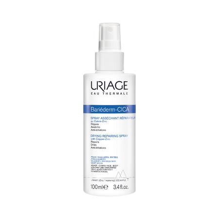Очень удобное в применении средство Uriage Bariederm Cica-Spray Asséchant Réparateur au Cu-Zn создано специально для ухода за раздраженными мокнущими зонами, подверженными риску вторичного инфицирования (в том числе при пеленочном дерматите), и за атопичной кожей. Спрей оказывает успокаивающее, смягчающее, подсушивающее и заживляющее действие, уничтожает патогенную микрофлору, препятствует развитию воспалений. Урьяж Барьедерм Цика-Спрей восстанавливающий с Cu-Zn не доставляет неприятных ощущений при нанесении, легко проникает в складочки на теле малыша, активизирует собственные защитные механизмы кожи. Термальная вода Урьяж, глюконаты меди и цинка ускоряют процессы регенерации. Активные компоненты: термальная вода Uriage снимает раздражение и покраснение, улучшает естественный гидробаланс кожи, ускоряет клеточное обновление; глицерин смягчает и разглаживает кожу, препятствует ее пересыханию комплекс TLR2-Regul блокирует выработку медиаторов воспалений; глюконаты меди и цинка восстанавливают здоровый баланс микрофлоры эпидермиса, улучшают его барьерные качества, стимулируют регенерацию клеток, синтез коллагена и эластина; смектит – абсорбент, смягчает, успокаивает и подсушивает кожу. Не содержит спирта. без отдушек без парабенов гипоаллергенно
