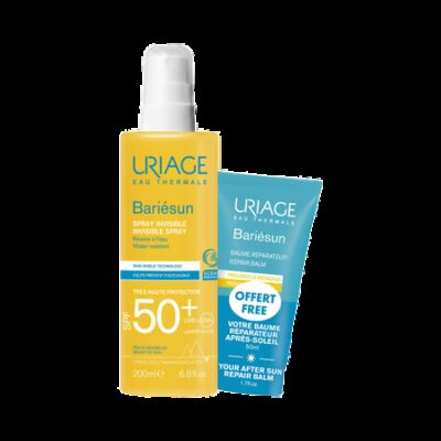 Урьяж Набор Барьесан включает в себя два средства ухода: Урьяж Барьесан SPF50+ Спрей 200 мл Это средство высокой защитыот ультрафиолета для чувствительной кожи лица и тела в удобном формате, которое эффективно защищает от солнечных лучей, интенсивно увлажняет и предотвращает обезвоживание, вызванное длительным пребыванием на солнце. Нежирная текстура, средство легко наносится и быстро впитывается. Без парабенов. Без спирта. Без октокрилена. Урьяж Барьесан Восстанавливающий бальзам после солнца 50 мл Это полноценный восстанавливающий уход после длительного пребывания на солнце, который мгновенно успокаивает и приносит приятное ощущение прохлады, питает и смягчает кожу, защищает от сухости, шелушения, восстанавливает эластичность и мягкость кожи и защищает от агрессии свободных радикалов, вызванных солнцем. При регулярном нанесении закрепляет, продлевает и подчеркивает загар. Для лица и тела. Можно использовать для детей с четырех лет. Некомедогенно. Гипоаллергенно.