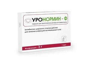 Уронормин-ф — антибиотик широкого спектра действия. Активен в отношении большинства грамотрицательных бактерий: Pseudomonas aeruginosa, Escherichia coli, Proteus mirabilis, Klebsiella pneumoniae, грамположительных бактерий: Staphylococcus spp. (в т.ч. Staphylococcus aureus, Staphylococcus epidermidis), Streptococcus spp. (в т.ч. Enterococcus faecalis).