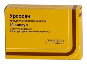 Показания к применению— неосложненная желчнокаменная болезнь: билиарный сладж растворение холестериновых желчных камней в желчном пузыре, при невозможности их удаления хирургическим или эндоскопическим методами профилактика рецидивов камнеобразования после холецистэктомии — хронический активный гепатит — острый гепатит — токсические (в т.ч. лекарственные) поражения печени — алкогольная болезнь печени — неалкогольный стеатогепатит — первичный билиарный цирроз печени — первичный склерозирующий холангит — кистозный фиброз (муковисцидоз) печени — атрезия внутрипеченочных желчных путей (в т.ч. врожденная атрезия желчного протока) — дискинезии желчевыводящих путей — билиарный рефлюкс-гастрит и рефлюкс-эзофагит — билиарный диспептический синдром (при холецистопатии и дискинезии желчевыводящих путей) — профилактика поражений печени при использовании гормональных контрацептивов и цитостатиков.Применение при беременности и кормлении грудьюПрименение урсодеоксихолевой кислоты при беременности возможно только в том случае, когда ожидаемая польза для матери превышает потенциальный риск для плода (адекватных строго контролируемых исследований применения урсодеоксихолевой кислоты у беременных женщин не проводилось). Данные о выделении урсодеоксихолевой кислоты с грудным молоком в настоящее время отсутствуют. При необходимости применения урсодеоксихолевой кислоты в период лактации следует решить вопрос о прекращении грудного вскармливания.Противопоказания— рентгенположительные (с высоким содержанием кальция) желчные камни — не функционирующий желчный пузырь — желчно-желудочно-кишечный свищ — острый холецистит — острый холангит — цирроз печени в стадии декомпенсации — печеночная недостаточность — почечная недостаточность — обтурация желчевыводящих путей — острые инфекционные заболевания желчного пузыря и желчных протоков — эмпиема желчного пузыря — повышенная чувствительность к компонентам препарата. С осторожностью применяют Урсосан у детей в возрасте от 2 до 4 лет, т.к. возможно затруднение при проглатывании капсул, хотя урсодеоксихолевая кислота не имеет возрастных ограничений в применении.Побочное действиеСо стороны пищеварительной системы: тошнота, рвота, диарея (может быть дозозависимой), запоры, преходящее (транзиторное) повышение активности печеночных трансаминаз; редко — кальцинирование желчных камней. Прочие: боль в спине, аллергические реакции, обострение ранее имевшегося псориаза, алопеция; редко — кальцинирование желчных камней..Состав1 капс. урсодеоксихолевая кислота* 250 мг. Вспомогательные вещества: крахмал кукурузный, магния стеарат, кремния диоксид коллоидный, титана диоксид, желатин.