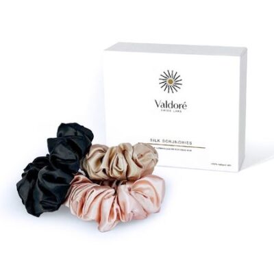Гладкость и элегантность натурального шелка – для здоровья и красоты ваших волос.В наборе 3 резинки-скранчи в цветах: Персик, Роза, Карбон. Легкие и мягкие резинки Valdoré очень нежно заботятся о ваших волосах, не оставляя заломов, спутывания и повреждений.