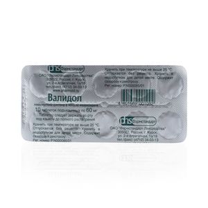 Круглые, плоскоцилиндрические таблетки белого или белого с желтоватым оттенком цвета, с сероватыми вкраплениями, с фаской и риской и, с характерным запахом ментола.