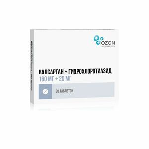 Валсартан-Гидрохлоротиазид Таблетки 160 мг+25 мг 30 шт