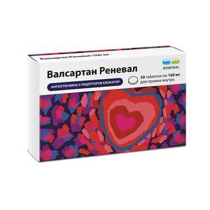 Валсартан Реневал, 160 мг, таблетки, покрытые пленочной оболочкой Препарат представляет собой круглые двояковыпуклые таблетки, покрытые пленочной оболочкой от светло-розового до розового цвета. Допускается шероховатость поверхности. На поперечном разрезе ядро белого или почти белого цвета.