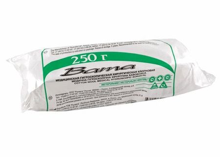 Вата медицинская гигроскопическая гигиеническая нестерильная хлопковая — это медицинское изделие, которое предназначено для медицинских и бытовых целей как гигиеническое и санитарное средство. Вата обладает хорошей впитывающей способностью и мягкостью, не оставляет ворсинок и не вызывает раздражения кожи. Используется как готовое изделие в виде шариков, тампонов, ленточек; как наполнитель при изготовлении перевязочных средств. Вата медицинская ГИГИЕНИЧЕСКАЯ — изготавливается из 100% хлопка, без добавок и примесей, предназначена для всевозможных медицинских манипуляций, связанных с обработкой ран, а также для снятия макияжа, ежедневного гигиенического ухода, как для детей, так и для взрослых. Обеспечивает максимальный впитывающий и очищающий эффект. Подходит для любых типов кожи. В упаковке содержится 250 грамм ваты. Соответствует всем требованиям ГОСТ. Ограничений и противопоказаний не имеет.