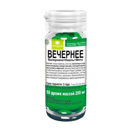 Вечернее валериана+хмель+мята Парафарм драже 0,2г 50шт