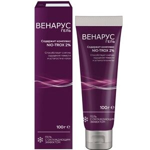 Благодаря уникальному комплексу активных компонентов, Венарус гель обладает следующими эффектами:- снимает чувство тяжести и усталости в ногах,- восстанавливает ощущение легкости и комфорта в ногах,- смягчает и защищает кожу ног.В состав средства входят:Активный комплекс NIO-TROX 2% (Троксерутин ниосомальный) — это инновационная трансдермальная система доставки троксерутина в форме ниосомальных везикул, способных проникать глубоко в кожу. В сочетании с другими активными компонентами (экстракт конского каштана, экстракт косточек красного винограда и др.), оказывает положительное действие на состояние и внешний вид ног.Комплекс NIO-TROX 2% способствует:- улучшению микроциркуляции,- уменьшению проницаемости капилляров,- уменьшению отечности в ногах,- уменьшению ощущения тяжести в ногах.Экстракт конского каштана (эсцин) — венотонизирующее средство растительного происхождения. Уменьшает проницаемость сосудистой стенки и ломкость капилляров. Обладает противовоспалительным и противоотечным свойствами. Улучшает микроциркуляцию и состояние кожи.Экстракт красного винограда — оказывает антиоксидантное и противоотечное действие, тем самым уменьшает нагрузку, способствующую развитию варикозного расширения вен.Масло виноградных косточек в сочетании с декспантенолом — оказывают противовоспалительное, успокаивающее, регенерирующее действие на кожу.