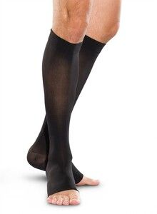 Гольфы плотные с открытым носком (26-32 мм.рт.ст.) VENOTEKS арт.2C113Компрессионные гольфы VENOTEKS уменьшают отеки и интенсивность болевых ощущений и судорог, предотвращают развитие осложнений и прогрессирование заболеваний. Гольфы изготовлены из гипоаллергенных и безопасных материалов, обеспечивают активный воздухо и влагообмен, а также комфортное ношение. Открытый носок гольфов облегчает их надевание, при использовании дополнительного шелкового носочка.2 класс компрессии — 26-32 мм рт. ст.Особенности Физиологически распределенная градуированная компрессия: лодыжка 100%, середина икры 80%, Параметры компрессии медицинских трикотажных изделий заложены в сложной современной технологии их изготовления, Компрессия точно рассчитана, дозирована и измерена в миллиметрах ртутного столба, Гарантированное сохранение компрессионных свойств в течение 6 месяцев ежедневного использования, Производятся из современных, безопасных, гипоаллергенных материалов, обеспечивающих активный воздухо- и влагообмен. LatexFree.