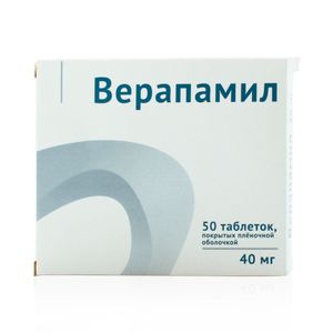 Состав Верапамила гидрохлорид 40 мг Фармакологическое действие Селективный блокатор кальциевых каналов I класса, производное дифенилалкиламина. Оказывает антиангинальное, антиаритмическое и антигипертензивное действие. Антиангинальный эффект связан как с прямым действием на миокард, так и с влиянием на периферическую гемодинамику (снижает тонус периферических артерий, ОПСС). Блокада поступления кальция в клетку приводит к уменьшению трансформации заключенной в макроэргических связях АТФ энергии в механическую работу, снижению сократимости миокарда. Уменьшает потребность миокарда в кислороде, оказывает вазодилатирующее, отрицательное ино- и хронотропное действие. Увеличивает период диастолического расслабления левого желудочка, уменьшает тонус стенки миокарда. Уменьшением ОПСС может быть также обусловлен антигипертензивный эффект верапамила. Верапамил существенно снижает AV-проводимость, удлиняет период рефрактерности и подавляет автоматизм синусового узла. Оказывает антиаритмическое действие при наджелудочковых аритмиях. Способ применения и дозы Индивидуальный. Внутрь взрослым — в начальной дозе 40-80 мг 3 раза/сут. Для лекарственных форм пролонгированного действия разовую дозу следует увеличивать, а частоту приема уменьшать. Детям в возрасте 6-14 лет — 80-360 мг/сут, до 6 лет — 40-60 мг/сут . частота приема — 3-4 раза/сут. При необходимости верапамил можно вводить в/в струйно (медленно, под контролем АД, ЧСС и ЭКГ). Разовая доза для взрослых составляет 5-10 мг, при отсутствии эффекта через 20 мин возможно повторное введение в той же дозе. Разовая доза для детей в возрасте 6-14 лет составляет 2.5-3.5 мг, 1-5 лет — 2-3 мг, до 1 года — 0.75-2 мг. Для пациентов с выраженными нарушениями функции печени суточная доза верапамила не должна превышать 120 мг. Максимальная суточная доза для взрослых при приеме внутрь составляет 480 мг. Меры предосторожности В период лечения возможно обострение псориаза. При феохромоцитоме пропранолол можно применять только после приема альфа-адреноблокатора. После продолжительного курса лечения пропранолол следует отменять постепенно, под наблюдением врача. На фоне лечения пропранололом следует избегать в/в введения верапамила , дилтиазема . За несколько дней перед проведением наркоза необходимо прекратить прием пропранолола или подобрать средство для наркоза с минимальным отрицательным инотропным действием. Влияние на способность к вождению автотранспорта и управлению механизмами У пациентов, деятельность которых требует повышенного внимания, вопрос о применении пропранолола амбулаторно следует решать только после оценки индивидуальной реакции пациента. Побочное действие Со стороны сердечно-сосудистой системы: брадикардия (менее 50 уд./мин), выраженное снижение АД, развитие или усугубление сердечной недостаточности, тахикардия . редко — стенокардия, вплоть до развития инфаркта миокарда (особенно у больных с тяжелым обструктивным поражением коронарных артерий), аритмия (в т.ч. мерцание и трепетание желудочков) . при быстром в/в введении — AV-блокада III степени, асистолия, коллапс. Со стороны ЦНС и периферической нервной системы: головокружение, головная боль, обморок, тревожность, заторможенность, повышенная утомляемость, астения, сонливость, депрессия, экстрапирамидные нарушения (атаксия, маскообра