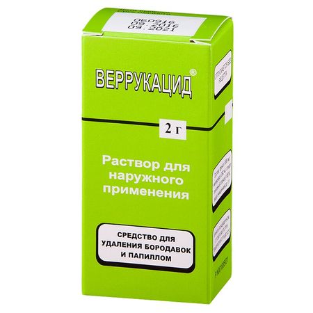 Показания обычные, нитевидные и подошвенные бородавки; папилломы; остроконечные кондиломы кожи; сухие мозоли; кератомы. Фармакологическое действие Обладает прижигающим действием, коагулирует белки кожи. Лекарственное взаимодействие Компоненты препарата легко растворяются в мазевой основе, в связи с чем смазывать какими-либо мазями обработанный Веррукацидом участок кожи не рекомендуется.