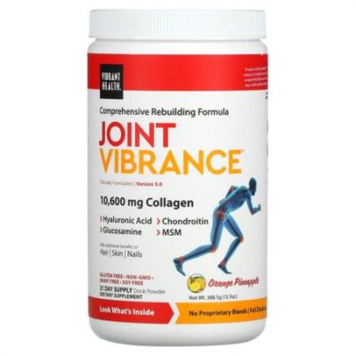 Универсальная формула для восстановленияРазработано в клинических условиях10 600 мг коллагенаГиалуроновая кислотаХондроитинГлюкозаминМСМДополнительные преимущества для† волос, кожи и ногтейНе содержит глютена, ГМО, молочных продуктов и соиПорошок для приготовления напитка на курс длительностью 21 деньПищевая добавкаПосмотрите, что внутриНикаких запатентованных смесей. Вся информация об ингредиентах указана на упаковке.Средство Joint Vibrance предназначено для регулярного ежедневного использования для поддержания здоровой функции суставов. Никакая другая формула не является настолько полной. Для восстановления суставов требуется больше, чем один ингредиент. Некоторые средство просто увлажняют, другие поддерживают только соединительную ткань. Joint Vibrance сочетает в себе растительные экстракты, особые минералы, мощные питательные вещества и многое другое для восстановления функции и структуры суставов. Это средство также помогает укрепить волосы, кожу и ногти.