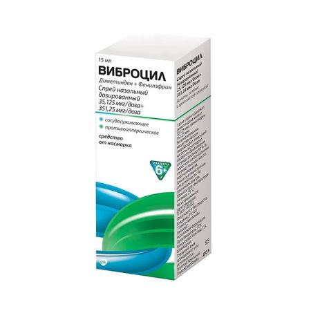 Показания Виброцил® предназначен для местного применения, и его активность не зависит от концентрации активных веществ в плазме крови. Фармакологическое действие Препарат с сосудосуживающим и противоаллергическим действием для местного применения при заболеваниях ЛОР-органов. Фенилэфрин — симпатомиметик, при местном применении оказывает умеренное сосудосуживающее действие (за счет стимуляции α1-адренорецепторов, расположенных в венозных сосудах слизистой оболочки носа), устраняет отек слизистой оболочки носа и его придаточных пазух. Диметинден является противоаллергическим средством — антагонистом гистаминовых H1-рецепторов; не снижает активность мерцательного эпителия слизистой оболочки носа. Лекарственное взаимодействие Фенилэфрин (как и другие сосудосуживающие средства) противопоказан больным, получающим ингибиторы МАО в данное время или получавшим их в течение 2 предыдущих недель. Не следует назначать одновременно препарат с три- и тетрациклическими антидепрессантами, бета-адреноблокаторами.