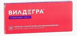 Круглые двояковыпуклые таблетки, покрытые пленочной оболочкой темно-голубого цвета. На поперечном разрезе таблетки видны два слоя -ядро белого или почти белого цвета и пленочная оболочка.