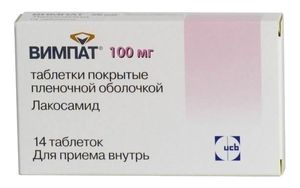 Показания к применению— в составе комплексной терапии парциальных судорожных припадков, сопровождающихся или не сопровождающихся вторичной генерализацией, у пациентов с эпилепсией в возрасте от 16 лет и старше.;Вимпат; в виде инфузий назначают в тех случаях, когда временно невозможен прием препарата внутрь.Применение при беременности и кормлении грудьюКлинических данных о применении лакосамида при беременности не имеется. Лакосамид не следует применять при беременности, за исключением тех случаев, когда польза для матери явно перевешивает возможный риск для плода.;Если женщина планирует беременность, то необходимо тщательно взвесить целесообразность применения этого препарата.;В экспериментальных исследованиях не было зарегистрировано тератогенных эффектов, однако отмечена эмбриотоксичность при применении в высоких (токсических) дозах.;Данные о выделении лакосамида с грудным молоком человека отсутствуют. В экспериментальных исследованиях отмечена экскреция лакосамида с грудным молоком.;Во время лечения лакосамидом следует прекратить грудное вскармливание.Противопоказания— AV-блокада II или III степени; — возраст до 16 лет; — наследственная непереносимость фруктозы, дефицит сахаразы-изомальтазы, глюкозо-галактозная мальабсорбция (т.к. в состав сиропа входит фруктоза); — фенилкетонурия (т.к. в состав сиропа входит аспартам); — повышенная чувствительность к компонентам препарата, в т.ч. к сое (входит в состав оболочки таблетки), а также к арахису.;С осторожностью следует применять препарат у пациентов с почечной недостаточностью тяжелой степени (КК≤30 мл/мин), с нарушениями проводимости, сердечной недостаточностью и инфарктом миокарда в анамнезе. Особую осторожность следует соблюдать у пациентов пожилого возраста, у которых повышен риск заболеваний сердца, а также при использовании лакосамида в комбинации с препаратами, которые вызывают удлинение интервала PR.СоставЛакосамид 100 мг;Вспомогательные вещества: целлюлоза микрокристаллическая, гипролоза низкозамещенная, просолв (целлюлоза микрокристаллическая 98%, кремния диоксид коллоидный 2%) HD 90, кросповидон, магния стеарат, гипролоза.;Состав пленочной оболочки: опадрай II 85G32445 желтый (поливиниловый спирт, тальк, макрогол 3350, лецитин соевый, титана диоксид (Е171), краситель железа оксид желтый (Е172)), опадрай YS-3-7413 прозрачный (макрогол 400, макрогол 8000, гипромеллоза 3 ср, гипромеллоза 6 ср, гипромеллоза 50 ср).
