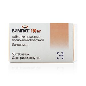 Показания к применению— в составе комплексной терапии парциальных судорожных припадков, сопровождающихся или не сопровождающихся вторичной генерализацией, у пациентов с эпилепсией в возрасте от 16 лет и старше.;Вимпат; в виде инфузий назначают в тех случаях, когда временно невозможен прием препарата внутрь.Применение при беременности и кормлении грудьюКлинических данных о применении лакосамида при беременности не имеется. Лакосамид не следует применять при беременности, за исключением тех случаев, когда польза для матери явно перевешивает возможный риск для плода.;Если женщина планирует беременность, то необходимо тщательно взвесить целесообразность применения этого препарата.;В экспериментальных исследованиях не было зарегистрировано тератогенных эффектов, однако отмечена эмбриотоксичность при применении в высоких (токсических) дозах.;Данные о выделении лакосамида с грудным молоком человека отсутствуют. В экспериментальных исследованиях отмечена экскреция лакосамида с грудным молоком.;Во время лечения лакосамидом следует прекратить грудное вскармливание.Противопоказания— AV-блокада II или III степени; — возраст до 16 лет; — наследственная непереносимость фруктозы, дефицит сахаразы-изомальтазы, глюкозо-галактозная мальабсорбция (т.к. в состав сиропа входит фруктоза); — фенилкетонурия (т.к. в состав сиропа входит аспартам); — повышенная чувствительность к компонентам препарата, в т.ч. к сое (входит в состав оболочки таблетки), а также к арахису.;С осторожностью следует применять препарат у пациентов с почечной недостаточностью тяжелой степени (КК≤30 мл/мин), с нарушениями проводимости, сердечной недостаточностью и инфарктом миокарда в анамнезе. Особую осторожность следует соблюдать у пациентов пожилого возраста, у которых повышен риск заболеваний сердца, а также при использовании лакосамида в комбинации с препаратами, которые вызывают удлинение интервала PR.СоставЛакосамид 150 мг;Вспомогательные вещества: целлюлоза микрокристаллическая, гипролоза низкозамещенная, просолв (целлюлоза микрокристаллическая 98%, кремния диоксид коллоидный 2%) HD 90, кросповидон, магния стеарат, гипролоза.;Состав пленочной оболочки: опадрай II 85G27190 золотистый (поливиниловый спирт, тальк, макрогол 3350, лецитин соевый, титана диоксид (Е171), краситель железа оксид желтый (Е172), краситель железа оксид красный (Е172), краситель железа оксид черный (Е172)), опадрай YS-3-7413 прозрачный (макрогол 400, макрогол 8000, гипромеллоза 3 ср, гипромеллоза 6 ср, гипромеллоза 50 ср).