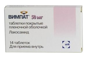 Состав Лакосамид 50 мг Вспомогательные вещества: целлюлоза микрокристаллическая, гипролоза низкозамещенная, просолв (целлюлоза микрокристаллическая 98%, кремния диоксид коллоидный 2%) HD 90, кросповидон, магния стеарат, гипролоза. Состав пленочной оболочки: опадрай II 85G20182 пурпурный (поливиниловый спирт, тальк, макрогол 3350, лецитин соевый, титана диоксид (Е171), краситель железа оксид красный (Е172), краситель железа оксид черный (Е172), краситель индиго кармин FD&C синий 2), опадрай YS-3-7413 прозрачный (макрогол 400, макрогол 8000, гипромеллоза 3 ср, гипромеллоза 6 ср, гипромеллоза 50 ср). Фармакологическое действие Противоэпилептический препарат. Точный механизм противоэпилептического действия лакосамида не установлен. Лакосамид селективно усиливает медленную инактивацию вольтаж-зависимых натриевых каналов, что приводит к стабилизации гипервозбудимых оболочек нейронов. Кроме того, лакосамид связывается с фосфопротеином CRMP-2, который экспрессируется преимущественно в нервной системе и участвует в регуляции дифференцировки нейронов и роста аксонов. Показано, что лакосамид задерживает развитие повышенной судорожной готовности. Лакосамид оказывал синергическое или аддитивное противосудорожное действие в комбинации с леветирацетамом, карбамазепином, фенитоином, вальпроевой кислотой, ламотриджином, топираматом или габапентином. Способ применения и дозы Для приема внутрь Суточную дозу делят на 2 приема — утром и вечером, вне зависимости от времени приема пищи. Рекомендуемая стартовая доза составляет 50 мг 2 раза/сут. Через 1 неделю дозу увеличивают до 100 мг 2 раза/сут. С учетом эффективности и переносимости поддерживающую дозу можно увеличить при приеме таблеток можно увеличить до 150 мг 2 раза/сут на третьей неделе приема, при приеме сиропа — на 50 мг 2 раза/сут каждую неделю, до максимальной суточной дозы 400 мг/сут (200 мг 2 раза/сут) с четвертой недели. Отменять Вимпат . рекомендуется постепенно, снижая дозу на 200 мг в неделю. Для в/в введения В/в вводят в течение 15-60 мин 2 раза/сут. Рекомендуемая начальная доза составляет 50 мг 2 раза/сут. Через 1 неделю дозу увеличивают до 100 мг 2 раза/сут. С учетом эффективности и переносимости поддерживающую дозу можно увеличивать каждую неделю на 50 мг 2 раза/сут до максимальной суточной дозы 400 мг (по 200 мг 2 раза/сут). Отменять Вимпат . рекомендуется постепенно (снижая дозу на 200 мг в неделю). Раствор можно вводить без дополнительного разведения или разведенным. Имеется опыт использования раствора для инфузий длительностью до 5 дней. Следует переходить на прием препарата внутрь сразу, как только это станет возможным. Лечение препаратом Вимпат . может быть начато как с приема таблеток внутрь, так и с в/в введения раствора для инфузий. При необходимости можно заменять прием таблеток в/в введением без повторного титрования дозы и наоборот. При этом не следует менять суточную дозу и кратность применения (2 раза/сут). При приеме внутрь и при в/в введении пациентам с легким и умеренным нарушением функции почек (КК >30 мл/мин) коррекция дозы не требуется. У пациентов с почечной недостаточностью тяжелой степени (КК ≤ .30 мл/мин) максимальная доза составляет 300 мг/сут. Лакосамид удаляется из плазмы при гемодиализе, в течение 4 ч после процедуры AUC снижается приблизительно на 50%. Пациентам, находящимся на гемодиализе, рекомендуется назначи
