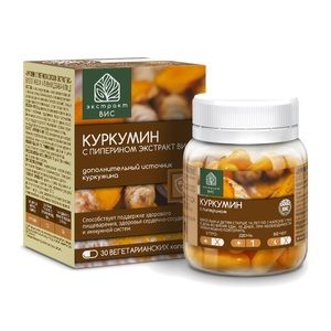 Для ежедневного приема лицам, которым необходимо поддерживать общее самочувствие. Биологически активные вещества экстракта куркумы способствуют поддержке здорового пищеварения, здоровья сердечно-сосудистой системы и поддержке иммунной системы. Рекомендуется в качестве биологически активной добавки к пище – дополнительного источника куркумина.КУРКУМИН с ПИПЕРИНОМ ЭКСТРАКТ ВИС — Биодоступная форма куркумина! КУРКУМИН с ПИПЕРИНОМ ЭКСТРАКТ ВИС — это стандартизированный экстракт из корня куркумы (Curcuma longa) с содержанием куркумина 95%, усиленный пиперином черного перца.В отличие от порошка куркумы, содержащего от 3 до 10 % куркумина с низкой биодоступностью, 1 капсула КУРКУМИН с ПИПЕРИНОМ ЭКСТРАКТ ВИС в 134 мг экстракта куркумы содержит 127 мг куркумина, что составляет 255% от адекватного уровня потребления и не превышает верхний допустимый уровень потребления.Чтобы увеличить усвоение куркумина, в состав КУРКУМИН с ПИПЕРИНОМ ЭКСТРАКТ ВИС добавлен 95% экстракт черного перца, 5 мг в 1 капсуле, стандартизированный по пиперину. Пиперин используется для максимальной усвояемости биологически активных веществ, он увеличивает биодоступность куркумина в 20 раз.Куркумин — это природный иммуностимулятор (воздействует на активацию Т- и В-лимфоцитов) и антиоксидант, нейтрализующий свободные радикалы и защищающий клетки иммунной системы от их негативного воздействия. Антиоксидантный эффект куркумина в 8 раз более сильный, чем у витамина Е.Антиоксидантная сила куркумина — это поддержка не только иммунитета, но и печени. Нормализация прооксидантно-антиоксидантного баланса способствует снижению повреждения гепатоцитов (клеток печени). Куркумин подавляет накопление холестерина, за счет увеличения секреции желчных кислот и выведения холестерина из организма, тем самым способствует защите от атеросклероза и поддержке сердечно-сосудистой системы. Такжее куркумин способствует снижению воспаления и скованности суставов. КУРКУМИН с ПИПЕРИНОМ ЭКСТРАКТ ВИС выпускается в вегетарианских капсулах Vcaps®, которые произведены мировым лидером Capsugel.Капсулы на растительной основе (целлюлозный материал получен из сосны) без диоксида титана, без консервантов, без глютена, без ГМО.Капсулы Vcaps® сертифицированы и одобрены Вегетарианским обществом Vegetarian and Vegan Action Society, OU Kosher и Halal.Более 10 лет мы опираемся на научные данные и производим фитонутриенты, которые заслуживают доверия!