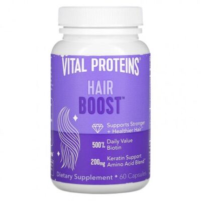 (L-цистин, L-аргинин, L-лизин, L-метионин)200 мг ** Гиалуроновая кислота (из гиалуроната натрия) 120 мг ** Кремний (из экстракта органических побегов бамбука) 100 мг ** Экстракт плодов серенои 100 мг ** Метилсульфонилметан (МСМ)100 мг ** Экстракт органических семян горчицы 11 мг ** Экстракт плодов черного перца BioPerine®? 5 мг ** ** Суточная норма не определена Поддерживает силу и густоту волос500% от суточной нормы биотина200 мг смеси аминокислот для поддержки выработки кератинаПищевая добавкаНе содержит бисфенола АПроизведено из ингредиентов бренда Orgen® от Orgenetics, Inc.Whole 30 ApprovedНе содержит молочных продуктовНе содержит глютена#stayvital®Ваши волосы никогда не выглядели лучшеПодарите вашим локонам внимание и заботу с помощью Hair Boost™! Наши растительные капсулы содержат витамины A, B6, B12, C и E для поддержки здоровья волос. Также в состав включен биотин, который помогает поддерживать красоту вашей кожи, волос и ногтей — комплексный уход всего в двух капсулах.