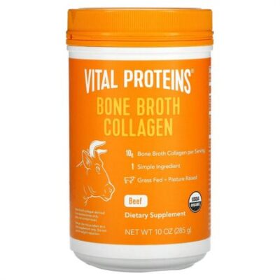 (среднее количество натуральных аминокислот в 1 порции, в мг)Аланин810 мгАргинин682 мгАспарагиновая кислота524 мгЦистин6 мгГлутаминовая кислота932 мгГлицин1928 мгГистиди톆90 мгГидроксипролин833 мгИзолейци톆145 мгЛейци톆316 мгЛизи톆377 мгМетиони톆80 мгФенилалани톆208 мгПролин1034 мгСерин287 мгТреони톆181 гТриптофа톆14 мгТирозин88 мгВали톆238 мㆆ Незаменимые аминокислоты 10 г коллагена из костного бульона в 1 порции1 простой ингредиентИзготовлено из рогатого скота травяного откорма, выращенного на пастбищеСертификат USDA OrganicПищевая добавкаПодходит для людей, соблюдающих палеодиету (подтверждено сертификатом)145 г хондроитинсульфата50 мг гиалуроновой кислотыНе содержит молочных продуктовРастворяется в горячих жидкостяхМожно добавлять в разные блюда#Stayvital®Органический состав сертифицирован CCOFОдобрено Whole 30Без глютенаНе содержит бисфенола АКостный бульон — это просто!Органический коллаген из костного бульона имеет сертификат USDA Organic. Этот продукт отлично подходит для тех, кто хочет воспользоваться преимуществами костного бульона, не тратя время на приготовление пищи. Полученный из органических говяжьих костей (сертификат USDA Organic) коллаген из костного бульона не содержит антибиотиков и гормонов. Он легко растворяется в горячей воде, поэтому его удобно употреблять в качестве горячего напитка, можно добавлять в супы или другие блюда для увеличения выработки коллагена.