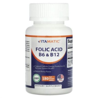 Главная » Аптека Vitamatic, Фолиевая кислота B6 и B12, натуральные ягоды, 180 быстро растворяющихся таблеток Просмотров 4 Vitamatic