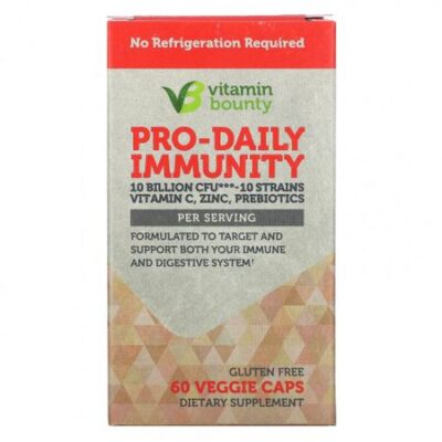***At time of manufacture 10 млрд КОЕ *** — 10 штаммов Витамин С, цинк, пребиотики Разработано для поддержки иммунной и пищеварительной системБез глютенаПищевая добавка Протестированные живые организмыЧистое качество гарантировано сторонней организацией Производится на предприятии, которое имеет регистрацию надлежащей производственной практики (GMP) Простой и эффективный способ поддерживать здоровье пищеварительной системы Множественные штаммы пробиотиков: Pro-Daily Immunity содержит 10 штаммов пробиотиков, которые обеспечат вам необходимую поддержку для здоровья пищеварительной системы. Ориентируйтесь на свою иммунную систему. Помогите укрепить иммунную систему своего организма с помощью нашей специальной смеси для поддержки иммунитета, в состав которой входят натуральные ингредиенты, такие как эхинацея и грибы рейши. Улучшенная минеральная смесь: Pro-Daily Immunity содержит витамин С и цинк, которые помогают организму естественным образом сопротивляться. Сделано в США: Все наши продукты производятся в США, обеспечивая оптимальную свежесть и качество.В состав Pro-Daily Immunity входит смесь иммуностимулирующих пробиотиков, пребиотиков, необходимых витаминов и минералов, которые помогают укрепить иммунитет. Pro-Daily Immunity разработан с использованием специальных капсул с отсроченным высвобождением, которые обеспечивают попадание большей части пробиотиков в пищеварительную систему именно там, где они больше всего необходимы.