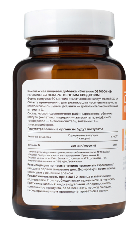 Витамин D3, 10000 МЕ, 60 капсул, SDL