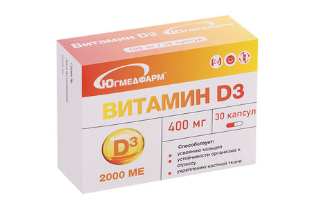 Витамин Д3 2000 МЕ, 400 мг, 30 шт, капсулы