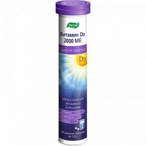 За последние несколько лет во всем мире выросла популярность витамина D3. По данным ВОЗ, 80% россиян испытывает дефицит витамина D31. Он очень важен для нашего здоровья, так как повышает иммунитет, снижает уровень воспаления и вирусной активности, а также участвует еще в двухстах функциях организма.Прием витамина D3 способствует снижению заболеваемости ОРВИ, в том числе новой коронавирусной инфекции COVID-192. Доказано, что в странах, где у пациентов с COVID-19 более высокое содержание в организме витамина D3, риск осложнений значительно ниже. Витамин D3 повышает защитные силы организма, снижает уровень «цитокинового шторма» (гипервоспаления), поддерживает функцию легких.Влияние витамина D3 на иммунную систему:Прием витамина D3 снижает риск развития ОРЗ в среднем на 12%Витамин D3 лучше принимать ежедневно, а не однократно (риск развития ОРЗ снижается на 19%)Защитный эффект более выражен у людей с исходно низким уровнем витамина D3 в крови (риск снижается на 70%)Витамин D3 положительно влияет на работу легких, способствуя улучшению дыхательной функцииУ больных с пневмонией, а также на искусственной вентиляции легких, чаще встречается недостаточность витамина D3.Витамин D3 2000 МЕ шипучие таблетки — высокая дозировка натурального витамина D3в уникальной легкоусваиваемой форме шипучих таблеток. Всего с 1 таблеткой вы получите сочный цитрусовый напиток с приятным вкусом, а главное — высоким содержанием витамина D3. Без глютена, без консервантов. Удобный прием для тех, кто испытывает проблемы с глотанием.Витамин D3 2000 МЕ способствует:Укреплению иммунитета и снижению риска развития простудных заболеванийЛучшему усвоению кальция, укреплению костей, зубов, снижению риска развития остеопорозаПовышению силы мышцПоддержанию сердечно-сосудистой и нервной систем, регуляции репродуктивной функции организма, повышению уровня серотонина — «гормона счастья» и улучшению настроения.