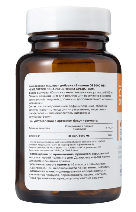 Витамин D3, 5000 МЕ, 60 капсул, SDL
