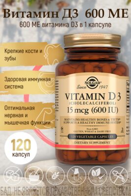 Витамин Д3 600 МЕ, 240 мг, 120 шт, капсулы
