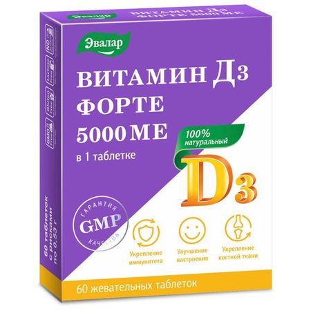 Витамин Д3 Форте Эвалар таблетки 0,53г 5000МЕ 60шт