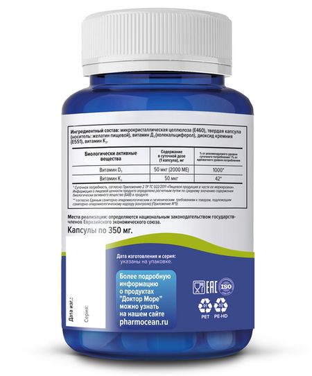 Главная » Аптека Витамин D3+К2 комплекс Доктор море д/взрослых, 60 шт, капсулы Просмотров 9 Метафарм ООО