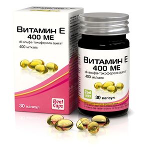 ВИТАМИН Е 400 МЕ DL-АЛЬФА-ТОКОФЕРОЛА АЦЕТАТ — Биологически активная добавка (БАД) к пищеВитамин Е — универсальный антиоксидант, тормозит свободнорадикальные реакции, предупре-ждает образование токсинов, повреждающих клеточные оболочки, защищает от окисления вита-мин А, улучшает тканевое дыхание, способствует экономии потребления кислорода клетками.Витамин Е контролирует биосинтез убихинона (Ко Q10) — незаменимого компонента в цепи про-изводства клеточной энергии.Витамин Е участвует в процессах деления клеток, тканевого обмена веществ, препятствует повы-шенной проницаемости и ломкости капилляров.Витамин Е стимулирует синтез белков (коллагена, ферментных, структурных и сократительных белков скелетных и гладких мышц, миокарда), регулирует синтез холестерина.При Е-витаминной недостаточности наблюдается частичное разрушение красных кровяных телец, снижение в них активности ферментов антиоксидантной защиты. Повышение проницаемости мембран всех клеток и субклеточных структур, накопление в них токсинов (продуктов перекисно-го окисления липидов). Именно этим обстоятельством объясняется разнообразие симптомов недо-статочности витамина Е — от мышечной дистрофии и бесплодия вплоть до некроза печени и раз-мягчения участков мозга, особенно мозжечка.Недостаточность витамина Е у человека может быть связана с особенностями питания (например, отсутствием в пище растительных жиров) либо обусловлена различными заболеваниями, такими как, заболевания печени, поджелудочной железы и др.1 капсула содержит: dl-альфа-токоферола ацетата — 400 мг (400 МЕ витамина Е).