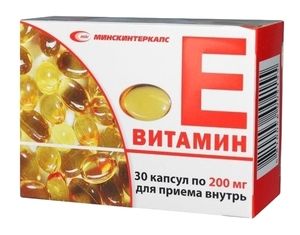 Показания к применениюГиповитаминоз витамина Е, состояния реконвалесценции после перенесенных заболеваний, протекавших с лихорадочным синдромом; высокие физические нагрузки; пожилой возраст; климактерические вегетативные расстройства; нарушения менструального цикла; дегенеративные и пролиферативные изменения суставов и связочного аппарата позвоночника.Применение при беременности и кормлении грудьюПри беременности и в период грудного вскармливания прием препарата только по рекомендации врача.ПротивопоказанияПовышенная чувствительность к компонентам препарата.; С осторожностью следует применять при тяжелом кардиосклерозе, инфаркте миокарда, при повышенном риске развития тромбоэмболий.Побочное действиеПрепарат хорошо переносится, при длительном лечении в редких случаях возможны тошнота, запор, диарея, головная боль, утомляемость, слабость. Прием больших доз может усугубить нарушения свертываемости крови, вызванные недостатком витамина КСоставТокоферола ацетат 200 мгВзаимодействие с другими препаратамиУсиливает эффект ГКС, НПВС, сердечных гликозидов.;Повышает эффективность противоэпилептических средств у больных эпилепсией (у которых повышено содержание в крови продуктов перекисного окисления липидов).;Высокие дозы железа усиливают окислительные процессы в организме, что повышает потребность в витамине Е.;Витамин Е усиливает действие антикоагулянтов, если дозы превышают 400 ME/сут. Одновременное применение витамина Е в дозе более 400 ME/сут с антикоагулянтами (производными кумарина и индандиона) повышает риск развития гипотромбинемии и кровотечений.;Назначение витамина Е в высоких дозах может вызвать дефицит витамина А в организме.;Колестирамин, колестипол, минеральные масла снижают всасывание витамина Е.