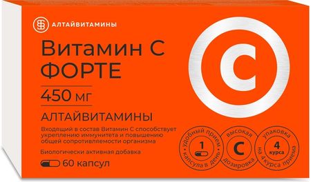 Главная » Аптека Витамин С Форте Алтайвитамины, 450 мг, 60 шт, капсулы Просмотров 13 Алтайвитамины АО