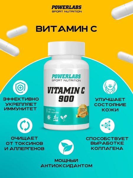 Витамин С PowerLabs, 900 мг, 90 шт, капсулы