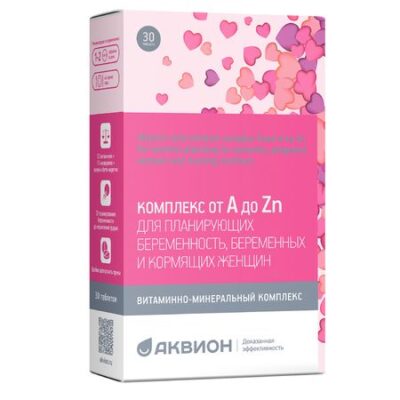 «Витаминно-минеральный комплекс от A до Zn для планирующих беременность, беременных и кормящих женщин» — это простой и удобный способ «обогатить» рацион витаминами и минералами во время планирования беременности, при беременности и грудном вскармливании. ПРЕИМУЩЕСТВА • Полноценный состав: 12 витаминов + 11 минералов + холин и бета-каротин. • Можно принимать от планирования до кормления грудью. • Удобно дозировать прием в зависимости от периода (подготовка, беременность или кормление). Таблетки цилиндрические двояковыпуклые с гладкой ровной поверхностью, покрытые пленочной оболочкой белого цвета